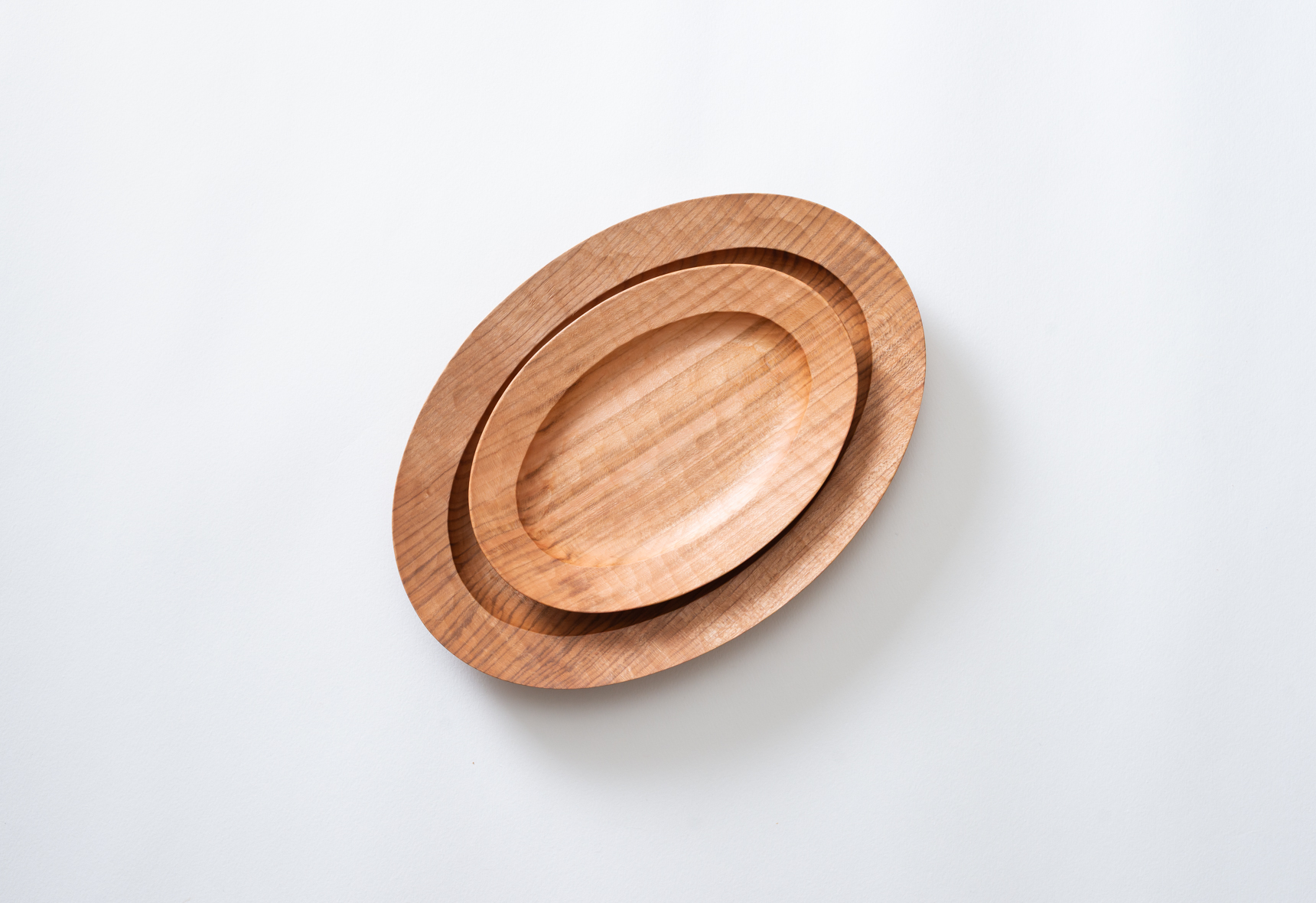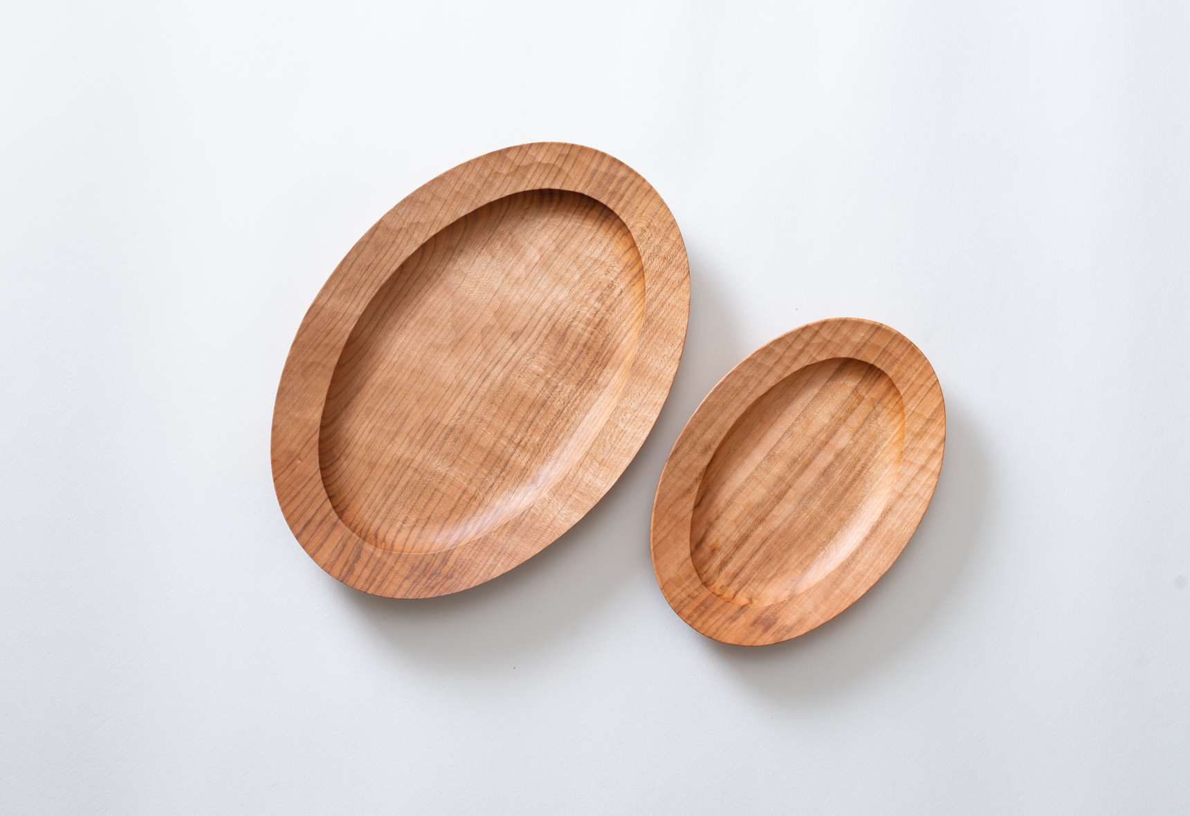 reedから車で10分ほどの山麓にある山口 和宏さんの工房。そのおおらかな人柄からも想像できる、手彫りのノミ跡が温かい雰囲気のオーバル皿です。