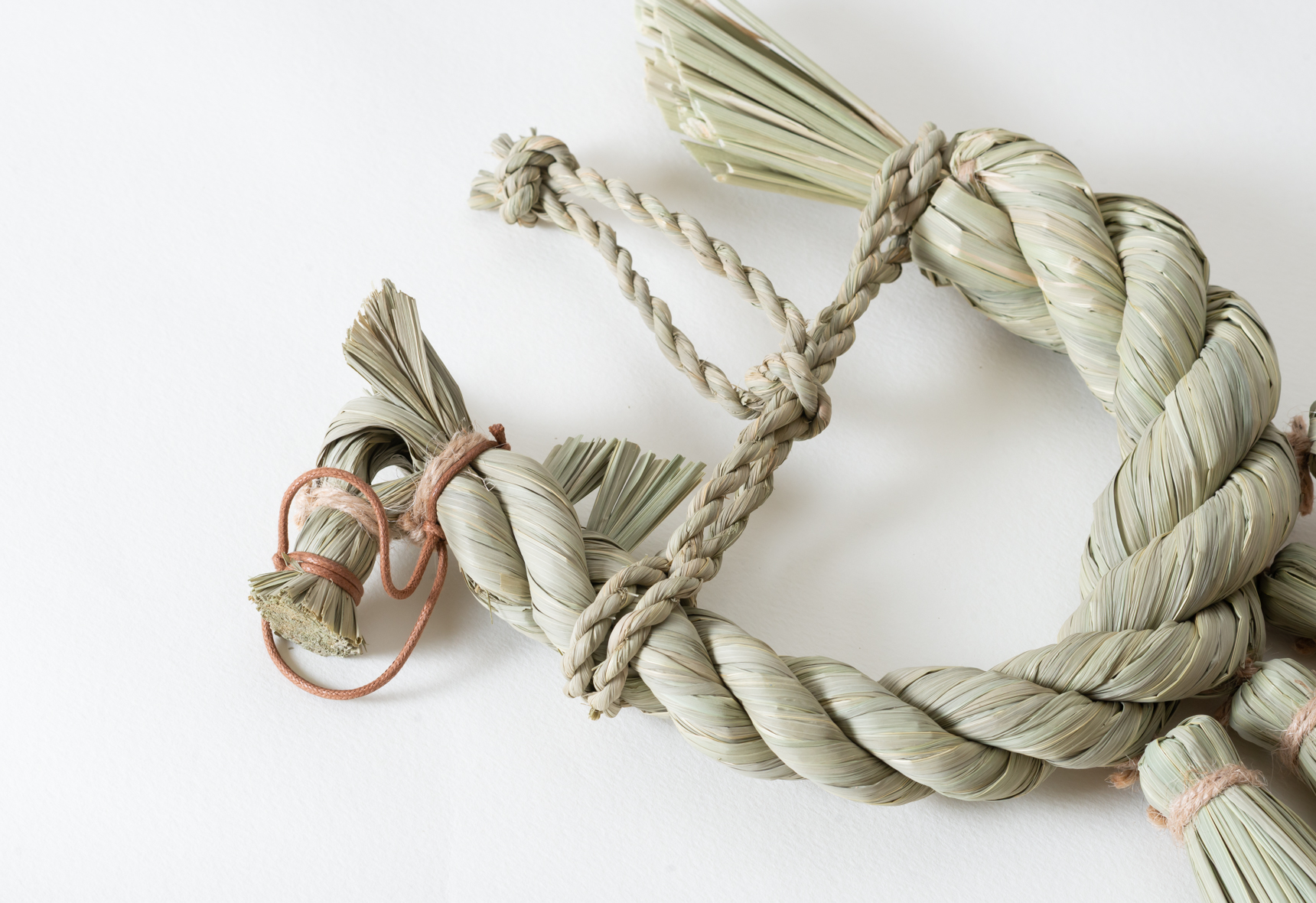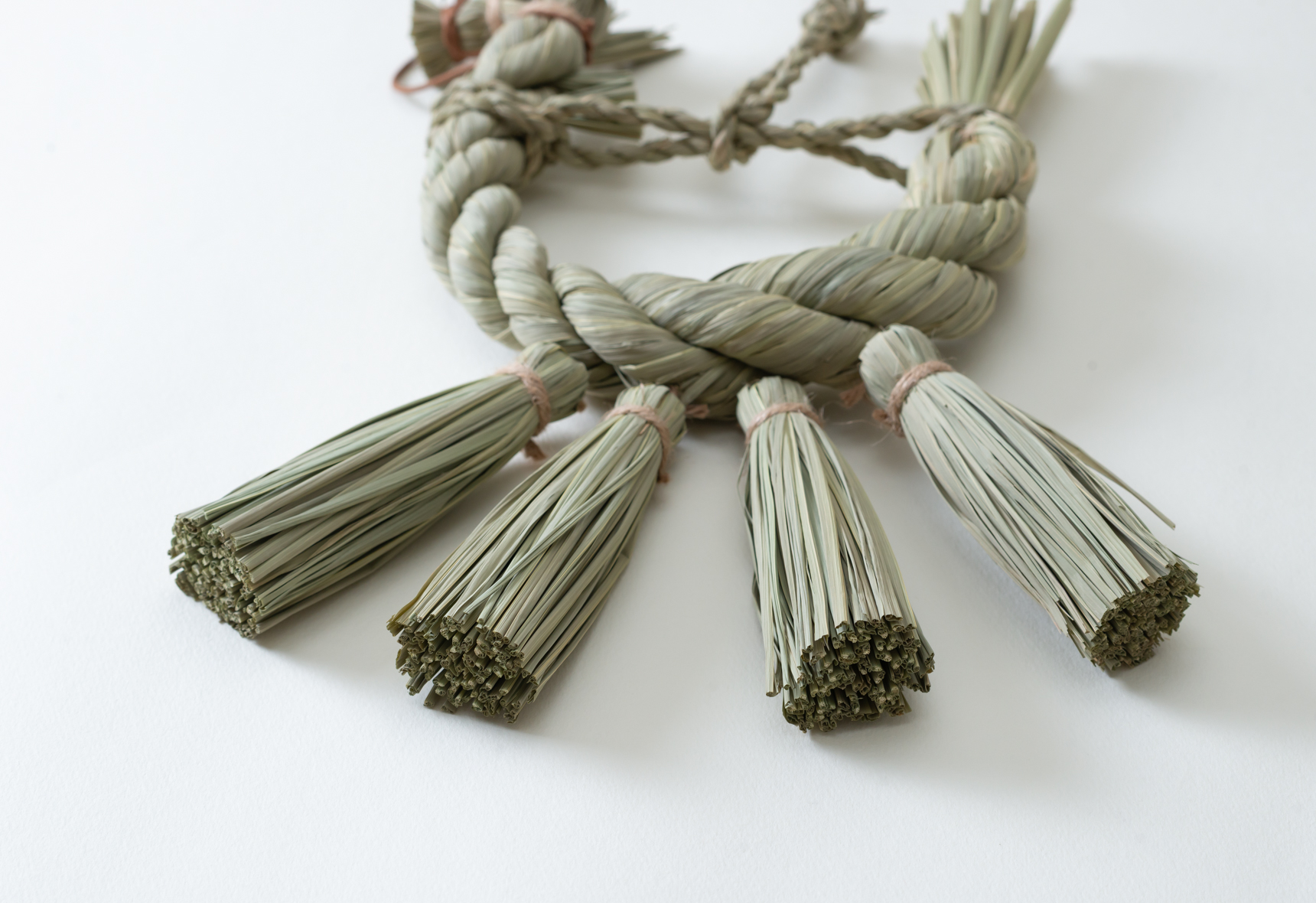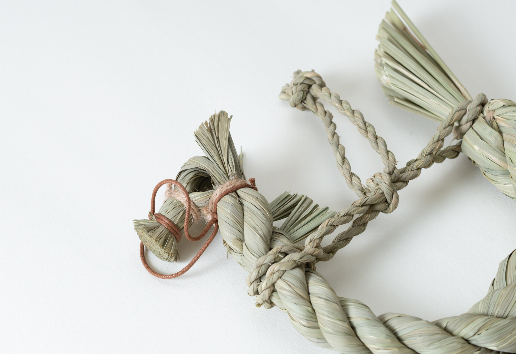こちらの「わら馬」は、その形どおり馬をモチーフにした飾り物。来年の干支であることはもちろん、神社で絵馬に願いを書いて奉納するように、昔から馬は神様の使いの象徴として信仰されてきました。素材となる藁は田植えから稲刈りまで自らの手で行い、機械が一般的な刈り入れも手作業で行うことで、編み上げた際に縁起物としてふさわしい仕上がりになるそうです。