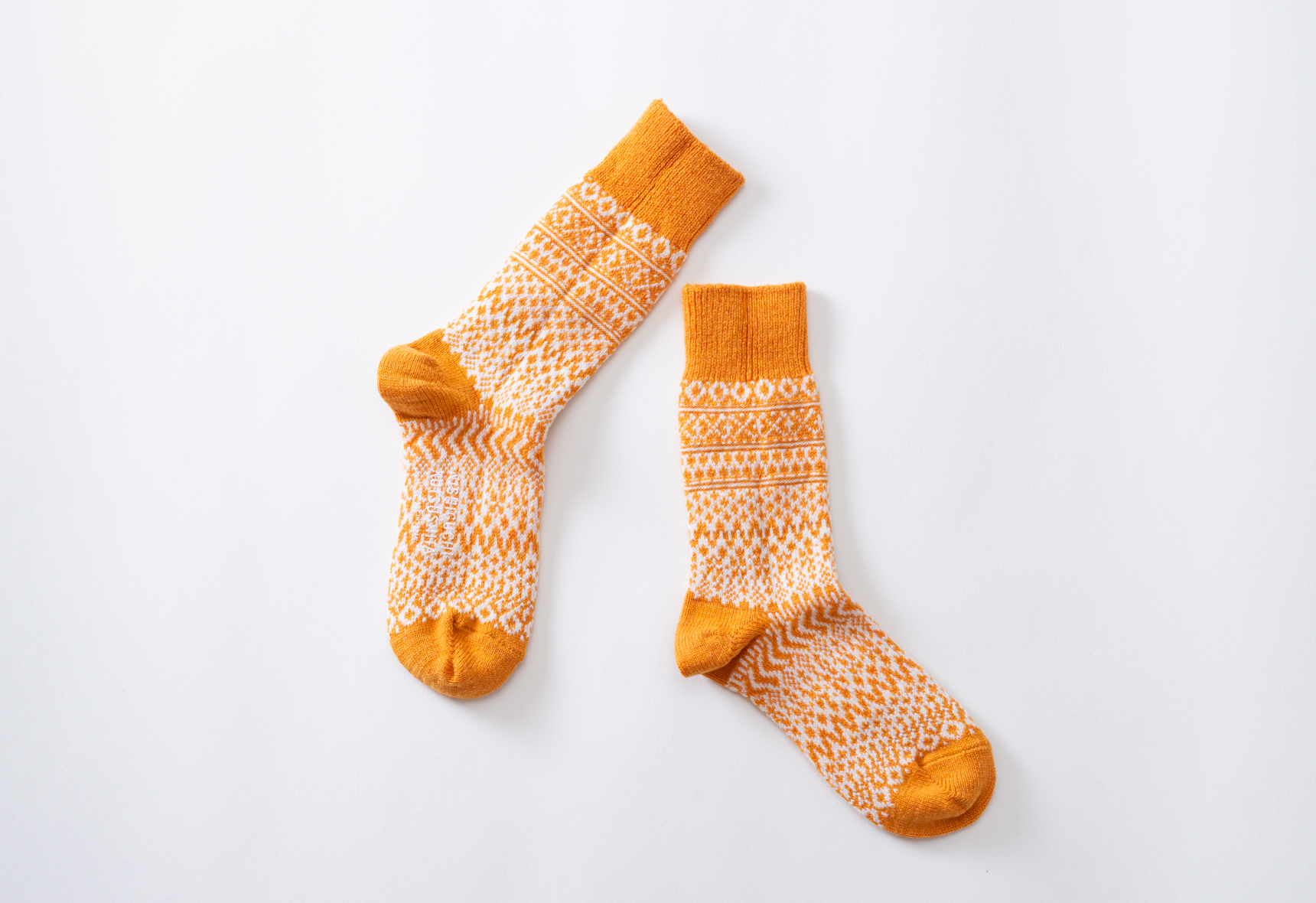 今シーズンは定番色に加えて足元を明るくしてくれる"ランタンオレンジ"が登場。保温性が高く冬の寒さにも負けない靴下として楽しく使ってください。尚、洗濯はウールを贅沢に使用しているため、手洗いをおすすめしています。