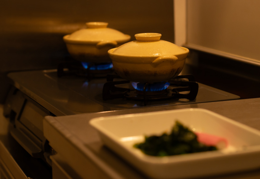 こちらは伊賀の土のみを使用し、ひとつひとつ職人が手作りしている風合いのよい土鍋。古代、琵琶湖の湖底だったと言われる伊賀の土は、細かな穴(気孔)をたくさん含んでおり、その気孔に熱が蓄えられることで優れた保温力を発揮します。火にかけると食材の芯までゆっくりと熱を通して旨味を引き出し、火を止めても余熱によって冷めにくく、美味しく食べられるのが魅力です。