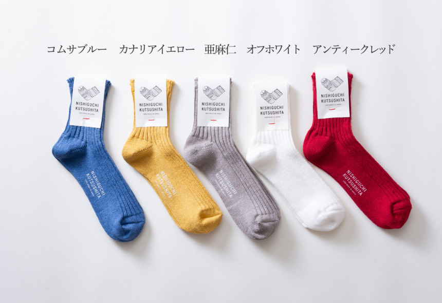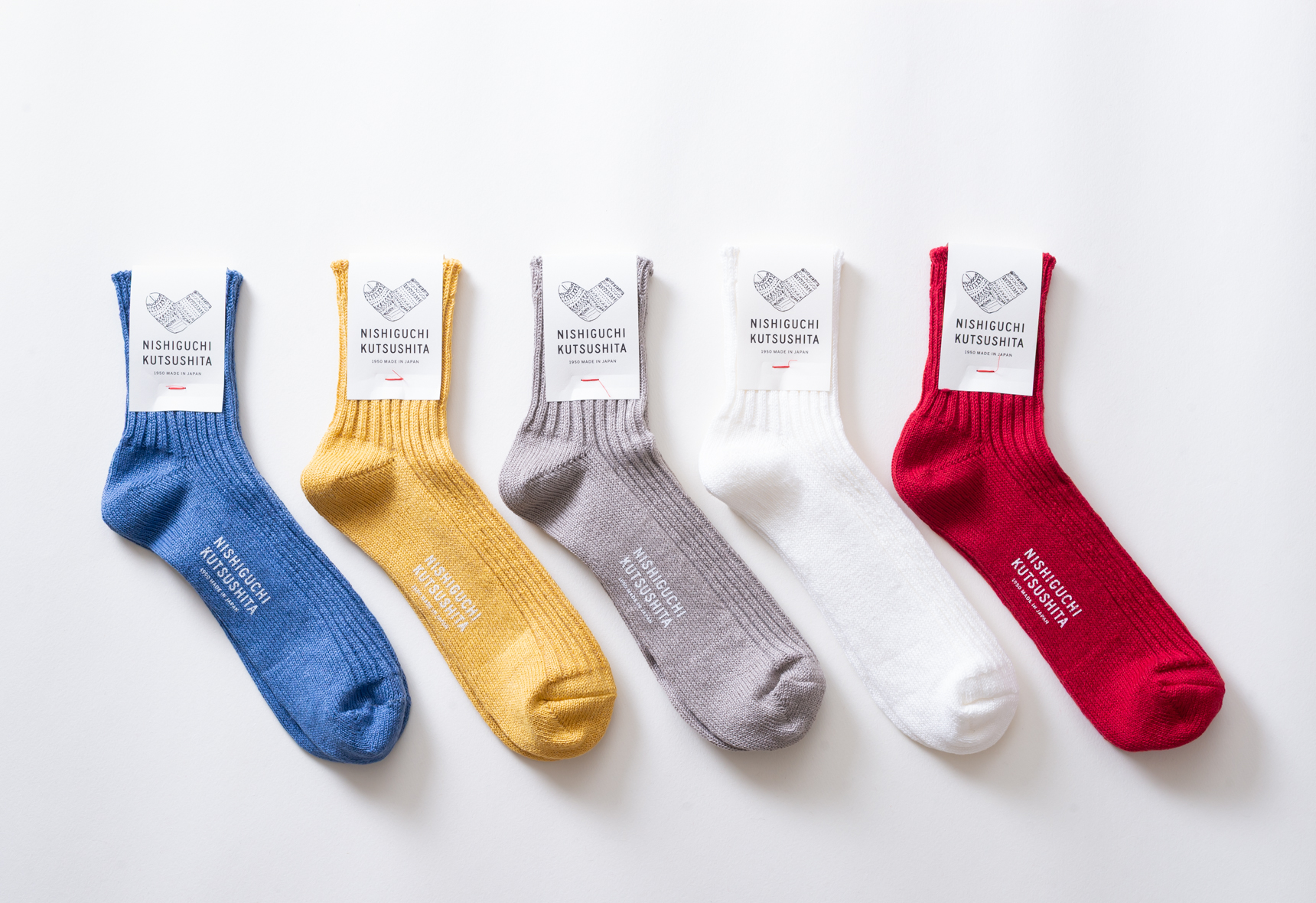 1950年の創業以来、デザインから製造まで一貫して自社でしかできないもの作りを目指してきた西口靴下。「はくひとおもい」のキャッチコピーに表れているように、良質な天然素材を用いながら、デイリーに履ける価格にもこだわったファクトリーブランドです。