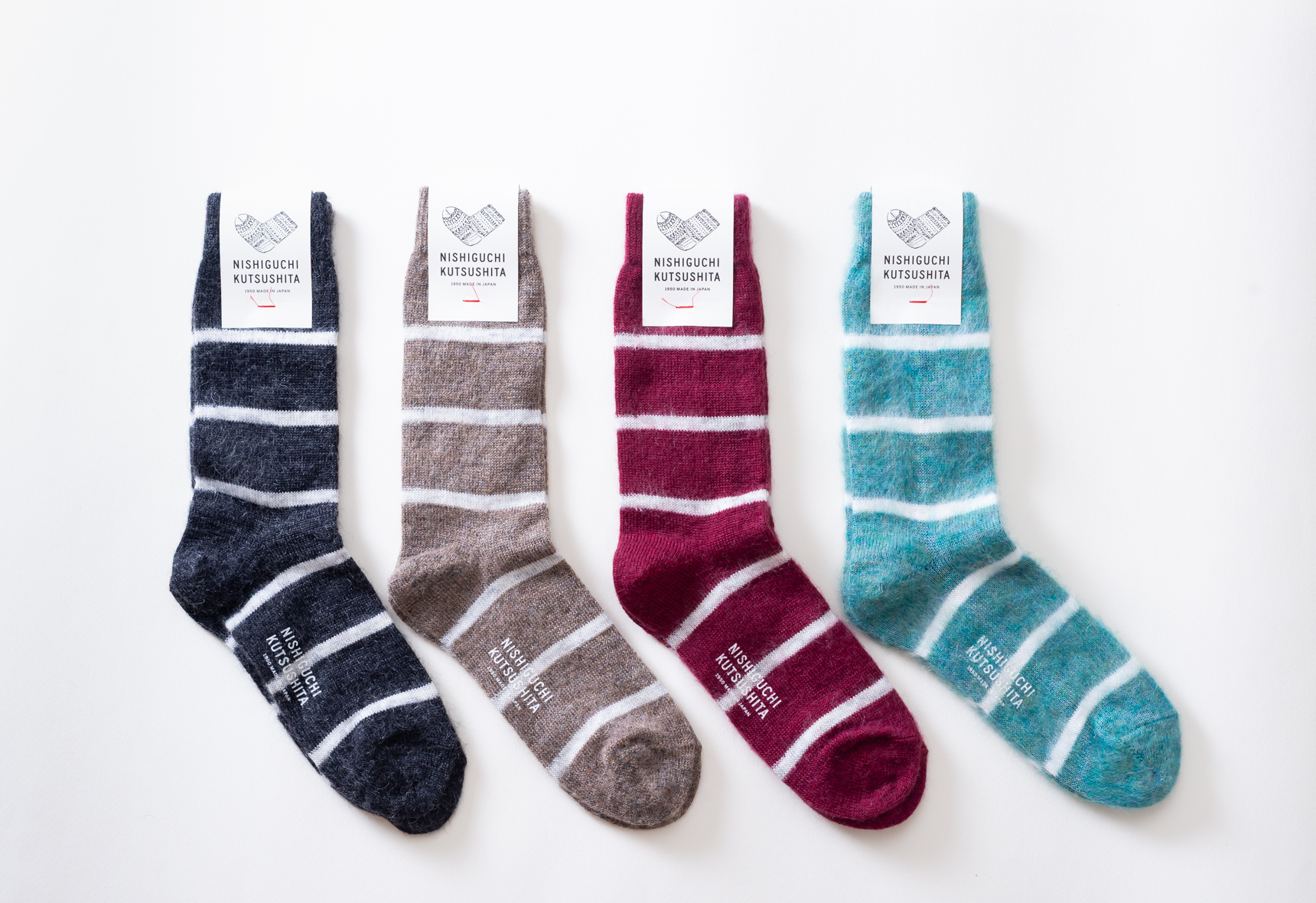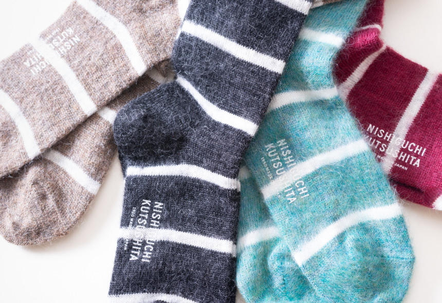 1950年の創業以来、デザインから製造まで一貫して自社でしかできないもの作りを目指してきた西口靴下。「はくひとおもい」のキャッチコピーどおり良質な素材を用いながら、デイリーに履ける価格にもこだわったファクトリーブランドです。