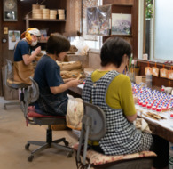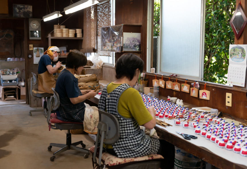 戦後の混乱期に染色家 鈴田照次さんが作り始めたのごみ人形は、郷土人形として徐々に全国に知られるようになり、これまで年賀切手に3度も採用されました。跡を継いだ息子の滋人さんは木版摺更紗で染色部門の人間国宝に認定される傍ら、人形づくりも手掛ける二足の草鞋を履かれ、現在は孫にあたる清人さんも同様の活動をされています。