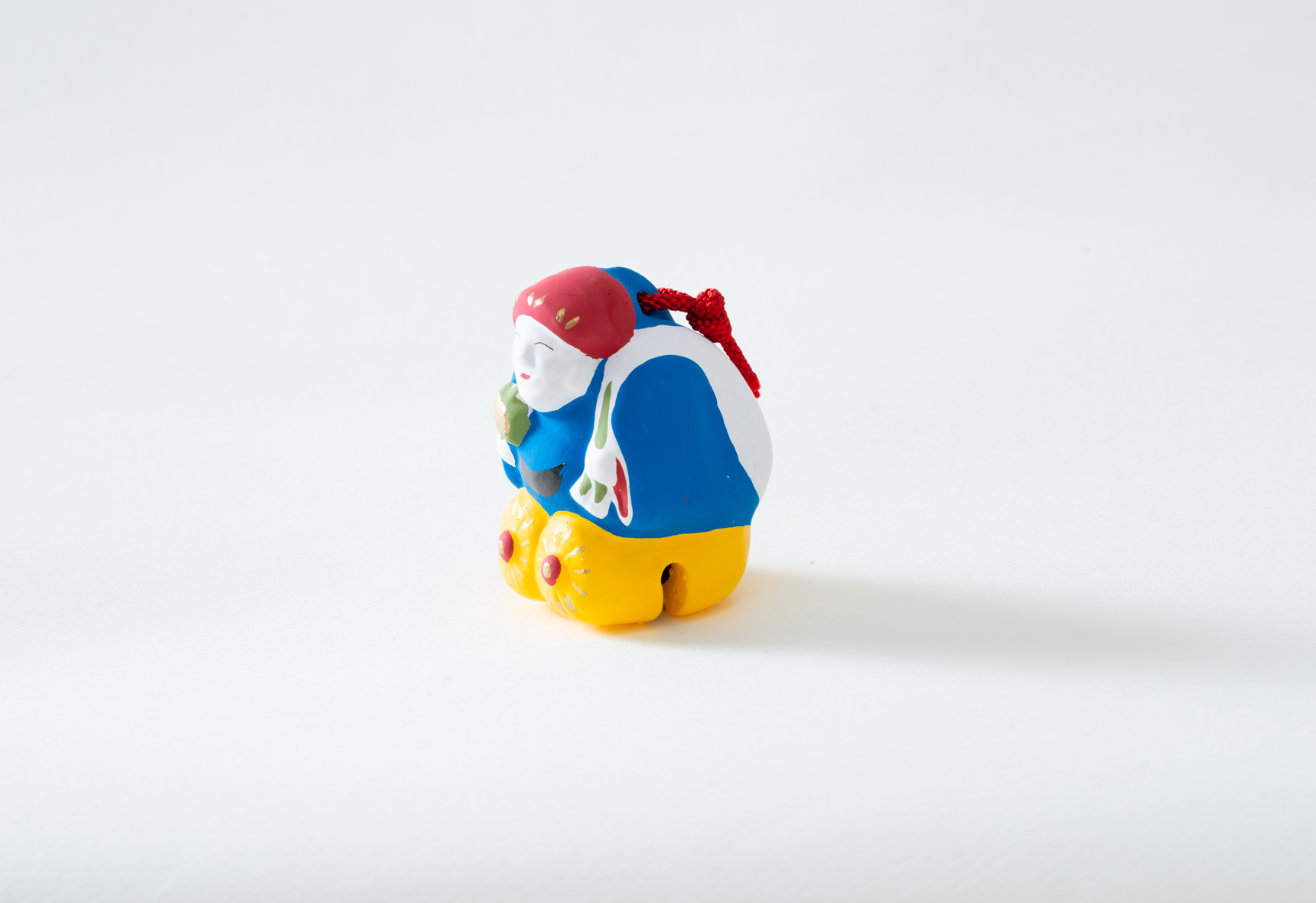 サイズは女性の手のひらに収まるくらいで、高さは名刺3/4くらい、幅は名刺と同じくらいとなっています。内部は空洞になっており、中に土玉が入っているので、赤い紐をゆらすとカラカラと音が鳴ります。
