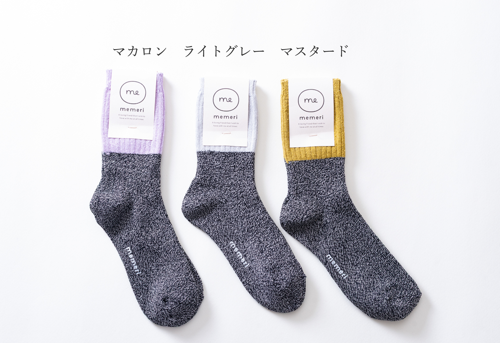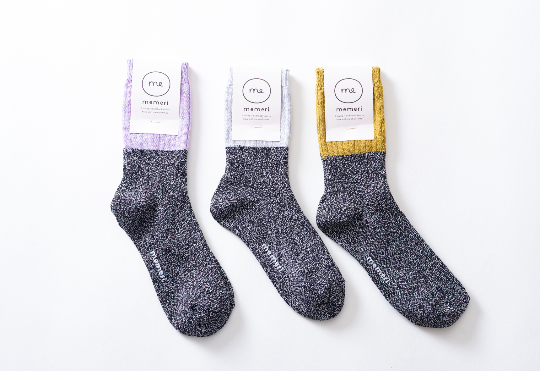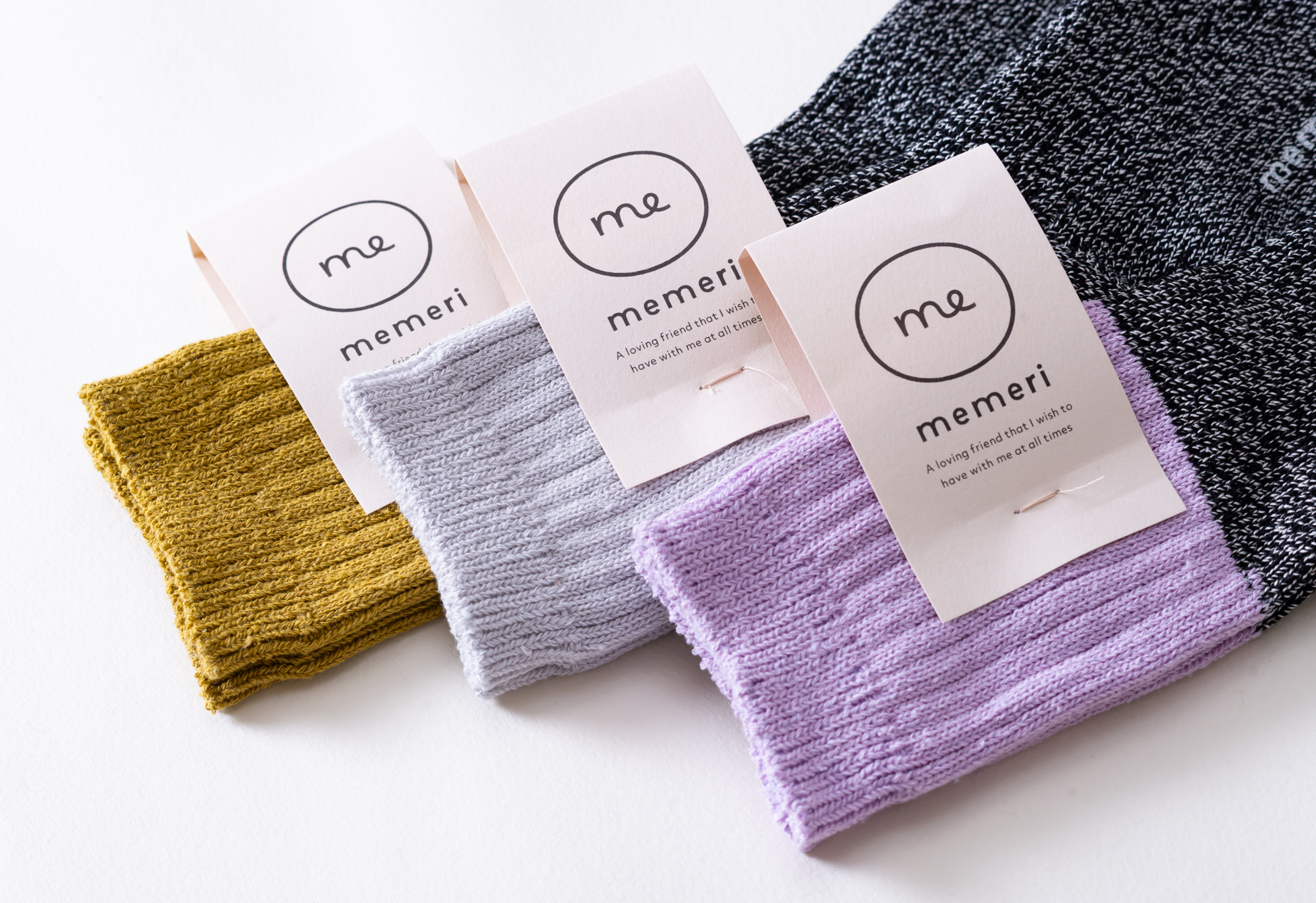 1950年の創業以来、デザインから製造まで一貫して自社でしかできないもの作りを目指してきた西口靴下。当店ではオールシーズン定番展開してますが、今回冬の靴下として”memeri”(メメリ)という別ラインをご紹介します。memeriのコンセプトは自然素材を生かした心地よさと馴染み良いデザイン。見た目はベーシックですがそれぞれ特徴を生かして作られています。