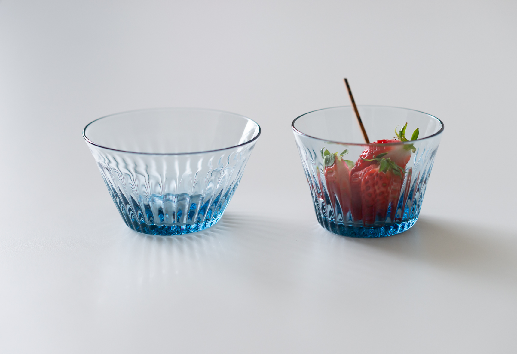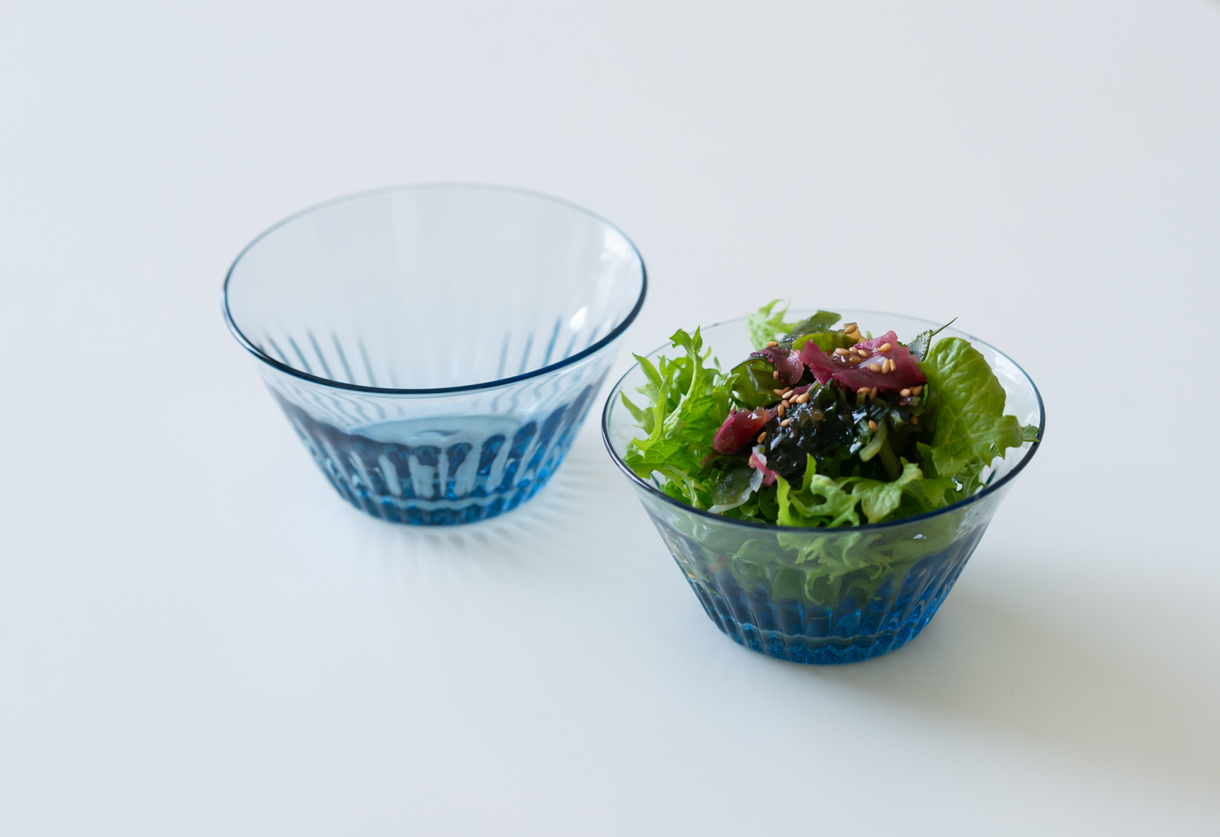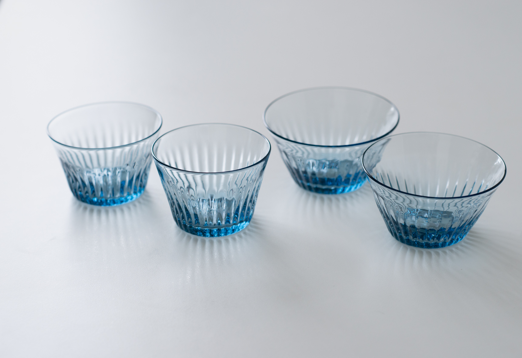 モール小鉢は大きさの微妙に違う2サイズ展開で、どちらも側面に細いモール模様が浮かび上がっています。細モール小鉢BはAよりも直径がやや大きいぶん容量も増えるので、デザートだけでなくちょっとした一品料理やサラダも添えて使っていただけます。